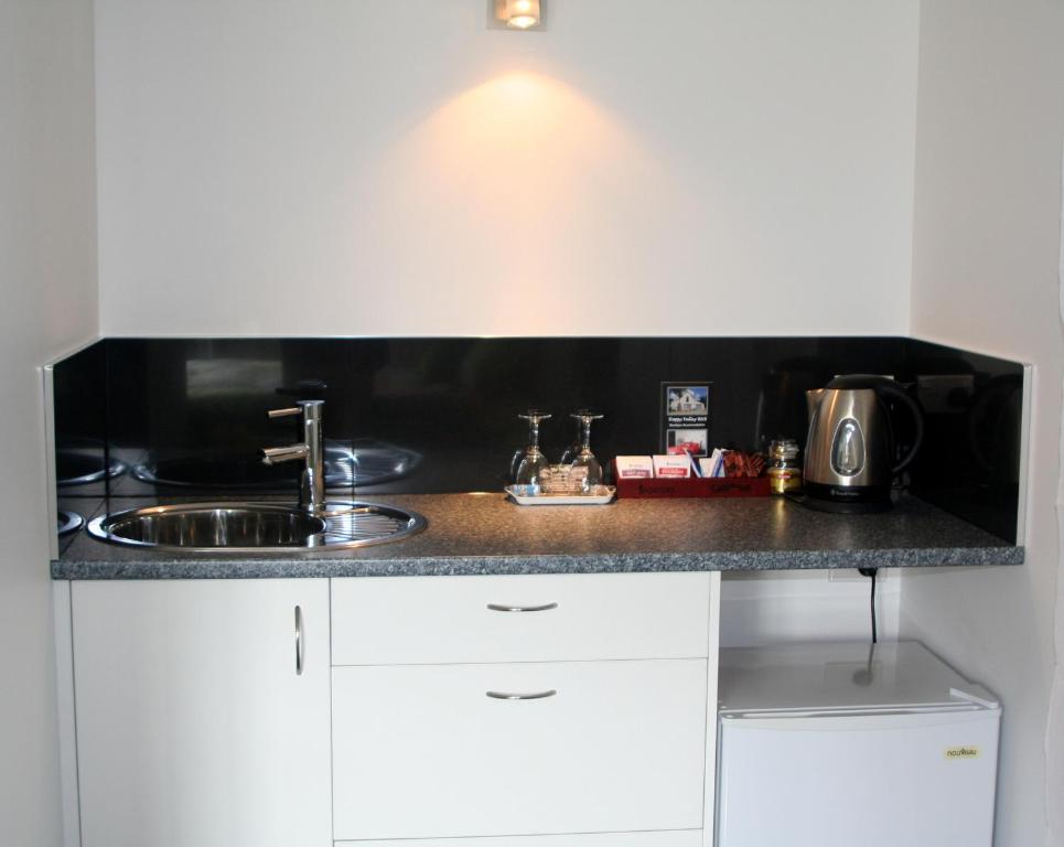 Deze moderne studio beschikt over een eigen badkamer, een queensize bed, luxe beddengoed, donzen dekbedden, een elektrische deken, thee- en koffiefaciliteiten , een broodrooster, een koelkast en een eettafel en stoelen. Verder heeft het een aan de muur gemonteerde flatscreen-tv, een fauteuil, elektrische verwarming, een verwarmd handdoekenrek, een haardroger, gratis toiletartikelen en een eigen ingang. De ramen hebben dubbele beglazing. Het ontbijt wordt in uw kamer geserveerd.